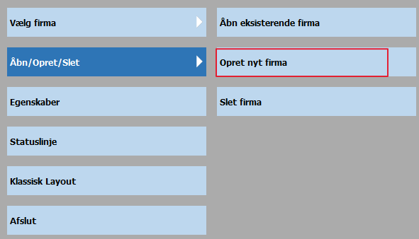 NB! Hvis man ønsker at oprette en kopi af et eksisterende regnskab, så det ligner de øvrige firma regnskabers opsætning, benyttes forsat metoden, der er vist i minivejledning O01 opret nyt firma