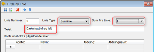 Tip: Hvis man benytter afdelingsregnskab, er det muligt på linjerne at afgrænse på oprettede afdelingskoder. Dermed kan man lave sine egne afdelingsregnskaber.