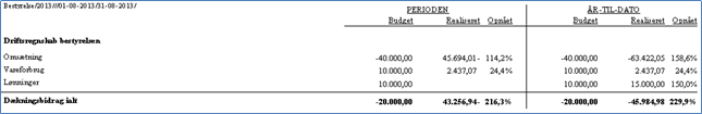 Perioderegnskab m/budget: Balance med perioden + år til dato, samt afvigelse i forhold til budget: