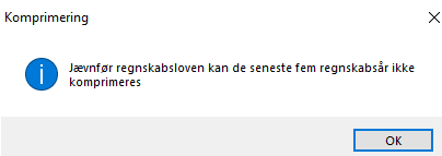 NB! Der er sat en blokering på komprimering af regnskabsår, så der kun kan komprimeres for perioder, der er minimum 5 år gamle.