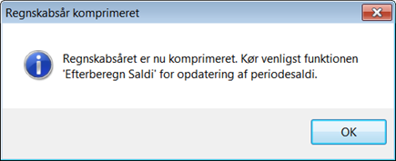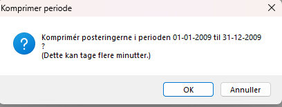 Bemærk ! Har regnskabet mange posteringer, skal man komprimere regnskabsåret for hver periode inden hele regnskabsåret komprimeres.