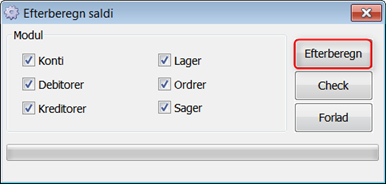 Efter komprimeringen skal du efterberegne saldi under Finans -> Efterberegn saldi.